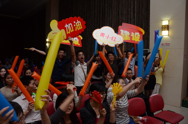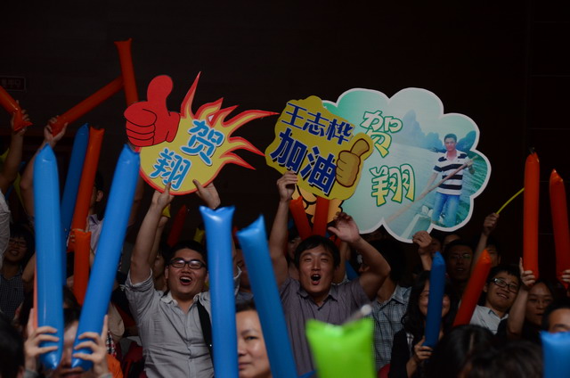 在激揚(yáng)的歌曲聯(lián)唱《五月的花?!分?,歌唱比賽正式開始。16名選手按組別輪流登場,現(xiàn)場精彩萬分。歌聲或激蕩高昂,或宛轉(zhuǎn)悠揚(yáng),或徐徐如風(fēng),或渾厚有力;表現(xiàn)力或動(dòng)感十足,或動(dòng)靜相宜,或幽靜宜人;曲風(fēng)各異,或熱辣奔放,或溫暖抒情,或自然歡快,或懷舊悠揚(yáng)。啦啦隊(duì)陣容也不容小覷,加油牌、口哨、熒光棒一應(yīng)俱全,或歌唱伊始吶喊助威,或伴隨著歌聲興奮地?fù)]舞著手臂,更有甚者激動(dòng)地走到臺(tái)上為選手喝彩,臺(tái)上臺(tái)下照相印襯、融為一體。期間,軍企拉歌、擊鼓傳花等活動(dòng)環(huán)節(jié)也將比賽推向一個(gè)又一個(gè)高潮。