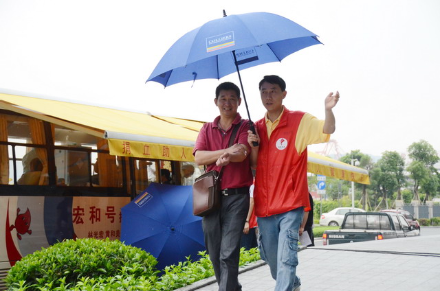 活動當時時有小雨,志愿者熱心打傘護送獻血的愛心人士回大樓