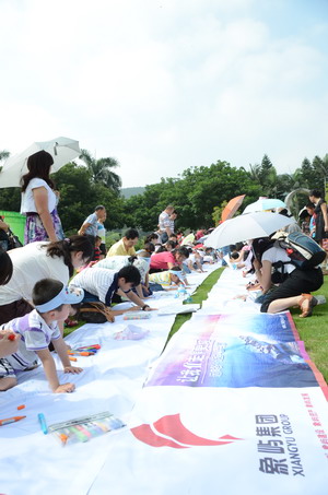 在歡樂的開場熱身舞蹈后,每位小朋友在家長的幫助下,從“讓世界充滿愛”、“我們的海洋朋友”、“小小環(huán)保家”三個(gè)繪畫主題中選取一個(gè),在預(yù)先準(zhǔn)備好的白色長卷上,將自己對愛護(hù)海洋、保護(hù)環(huán)境、互幫友愛的理解通過一支支水彩筆繪諸紙上,通過一幅幅可愛的圖畫,表達(dá)他們對公益的關(guān)注和認(rèn)識(shí),與其他的象嶼“雛鷹”們一起,提前度過了一個(gè)非常有意義的“六一”兒童節(jié)。