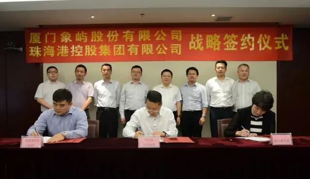 象嶼股份副總經(jīng)理程益亮、象嶼集團(tuán)投資發(fā)展總監(jiān)吳捷、象嶼股份物流管理中心總監(jiān)孫剛與珠海港控股集團(tuán)其他領(lǐng)導(dǎo)共同見(jiàn)證了簽約。