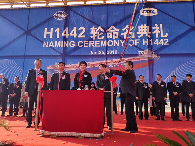 1月25日,揚(yáng)州中遠(yuǎn)海運(yùn)重工有限公司和外高橋造船有限公司聯(lián)合為中遠(yuǎn)海散運(yùn)建造的40萬噸礦砂船(VLOC)首制船在上海順利命名交付。象嶼股份黨委委員、象嶼股份副總經(jīng)理肖靜勤代表廈門象嶼股份有限公司參加了命名交船儀式,擔(dān)任新船教母,為新船命名“遠(yuǎn)津海”并剪彩。