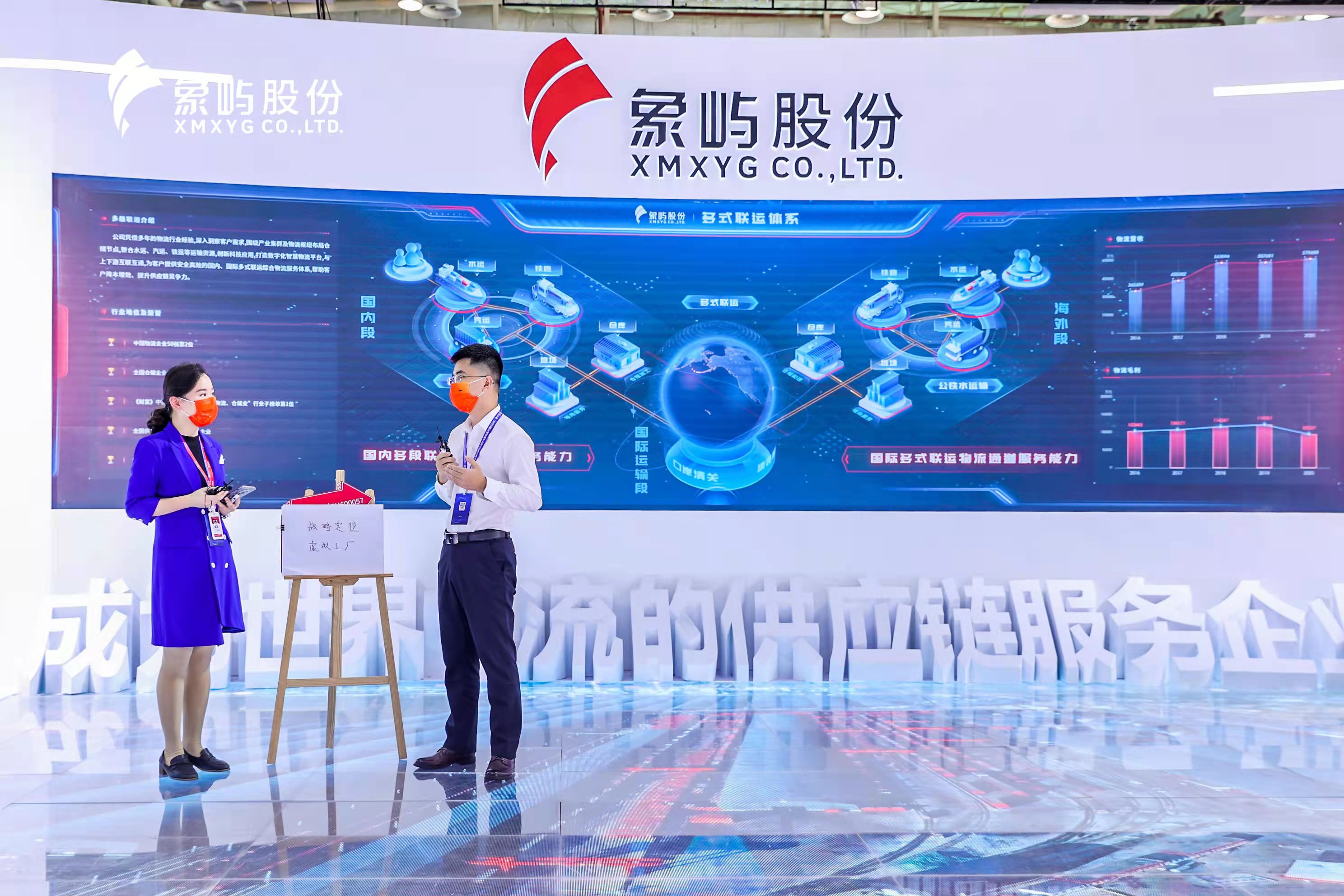 天屏地屏主屏三屏互動(dòng), 全景地屏展現(xiàn)了象嶼股份農(nóng)產(chǎn)品、能源化工、金屬礦產(chǎn)供應(yīng)鏈板塊的業(yè)務(wù)亮點(diǎn),通過(guò)東北象嶼糧倉(cāng)、陜西場(chǎng)站、印尼不銹鋼冶煉項(xiàng)目等典型項(xiàng)目實(shí)景展示,進(jìn)一步詮釋象嶼業(yè)務(wù)模式及國(guó)際化發(fā)展!